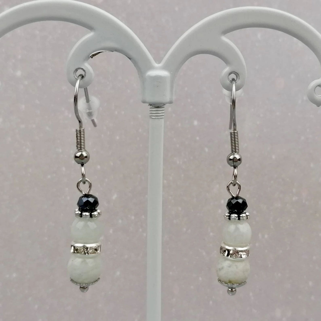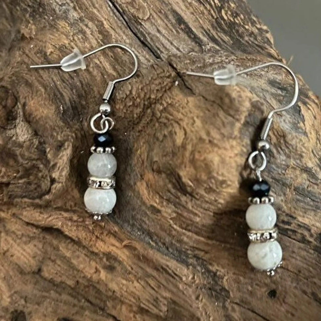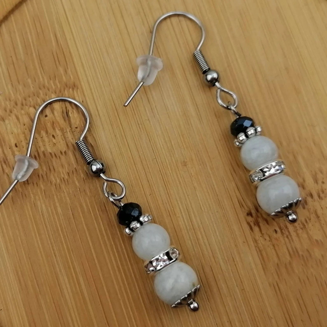 Boucles d'oreilles en pierre naturelle de Pierre de Lune 6 mm, perles facettées bleu marine, perles en strass montées sur des crochets en acier inoxydable munis de poussoirs en silicone