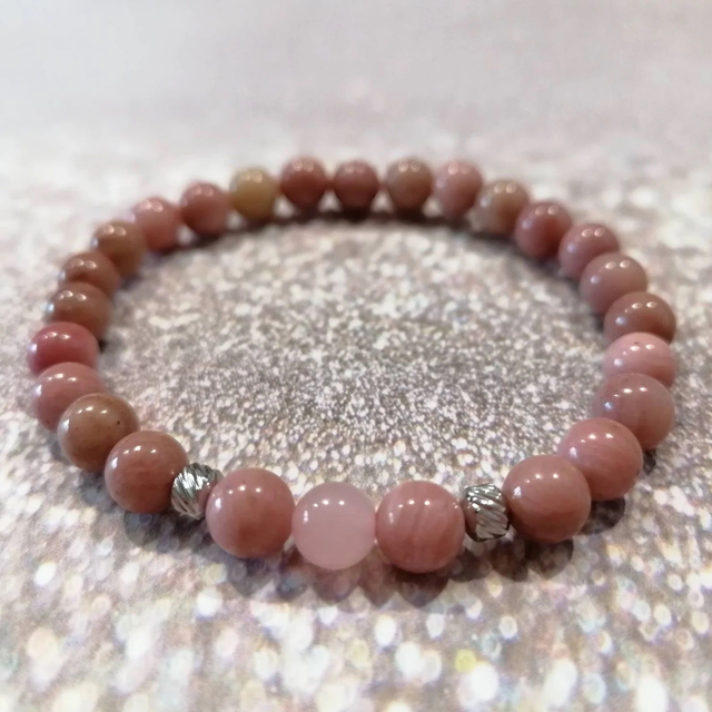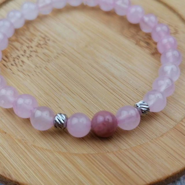 Bracelets en pierres naturelles 6 mm de Quartz rose et de Rhodochrosite, perles en acier